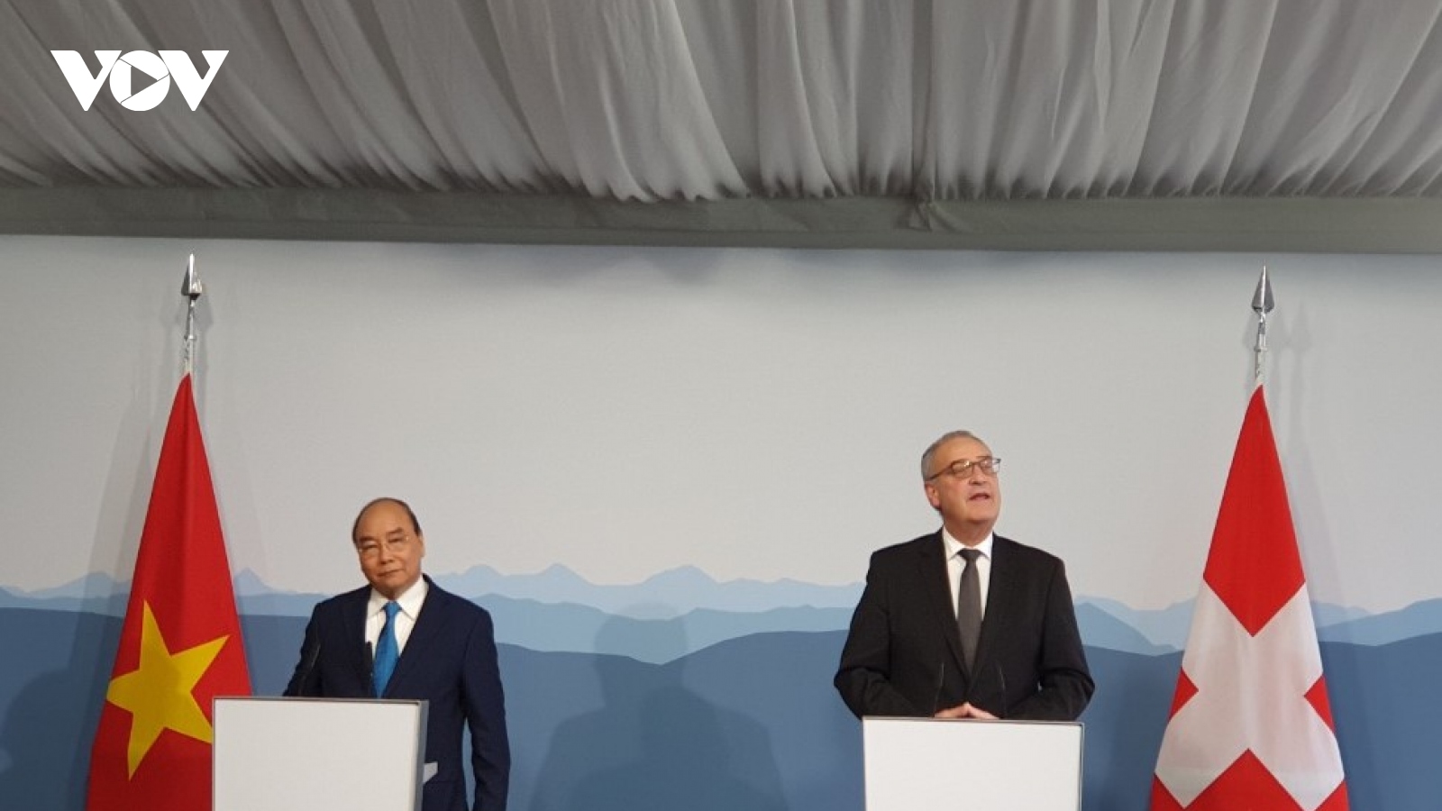 VOV.VN - Chiều 26/11, tại toà nhà Quốc hội Liên bang Thuỵ Sỹ ở thủ đô Berne, Chủ tịch nước Nguyễn Xuân Phúc đã hội kiến với Chủ tịch Hội đồng Quốc gia Liên bang Thụy Sỹ Andreas Aebi.