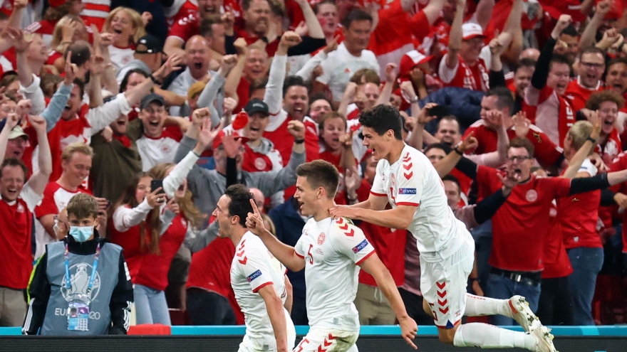VOV.VN - Đan Mạch tiến bước vào vòng knock-out EURO 2021 sau những diễn biến đầy kịch tính ở lượt cuối bảng C. Thụy Sĩ cũng hưởng niềm vui khi trở thành đội đứng thứ ba đầu tiên có vé đi tiếp.
