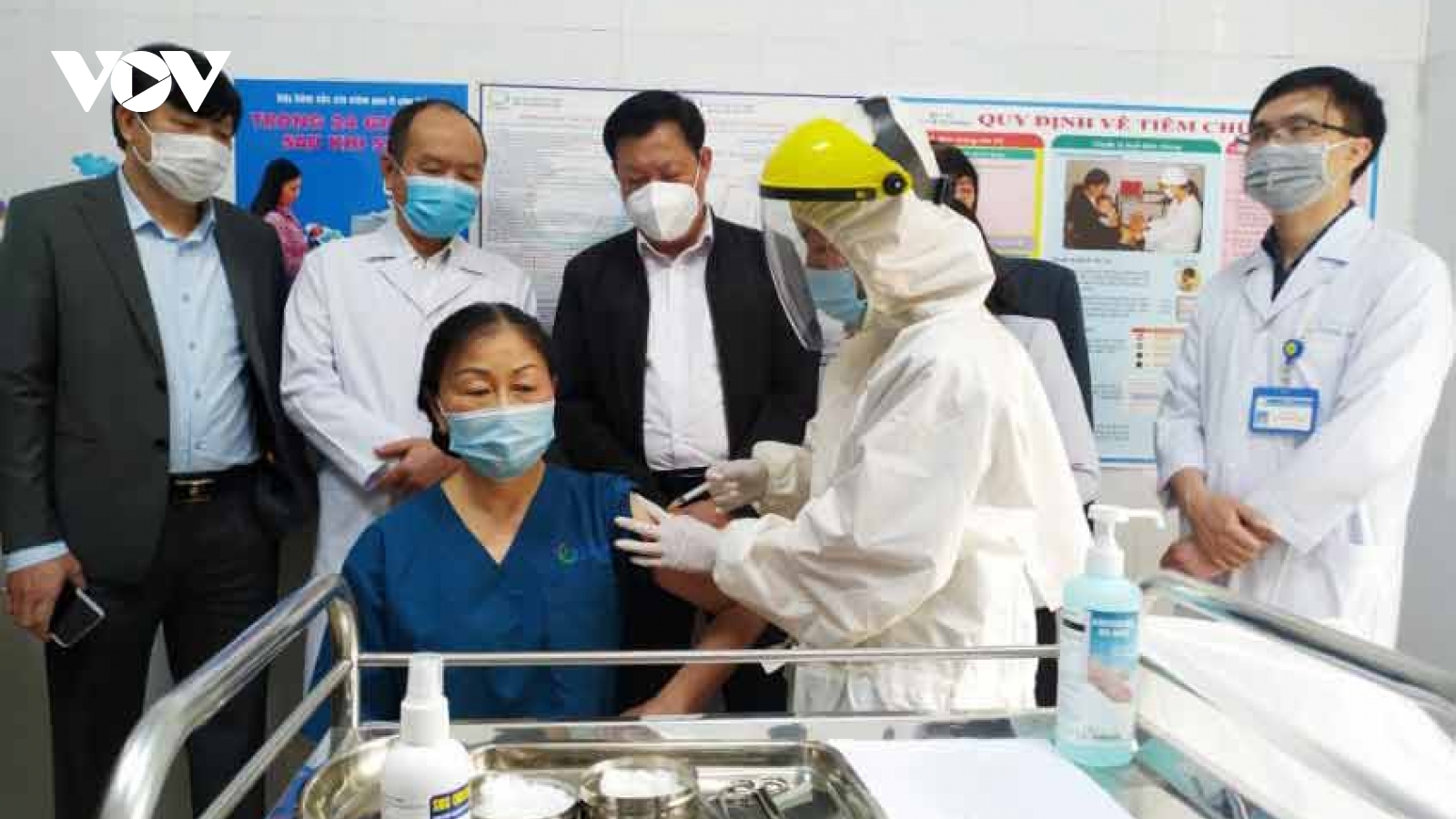VOV.VN - Ngày 24/3, Ban Chỉ đạo phòng, chống dịch Covid-19 tỉnh Đồng Tháp tổ chức tiêm 50 liều vaccine AstraZeneca cho cán bộ, nhân viên đang làm việc tại Bệnh viện Đa khoa khu vực Hồng Ngự trong tổng số 350 liều theo phân bổ của Bộ Y tế.