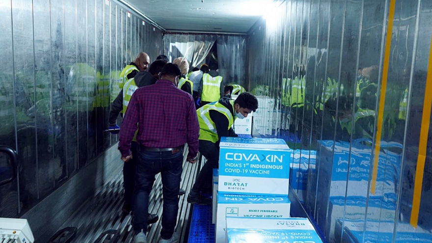 VOV.VN - Ngày 16/1, Ấn Độ đã bắt đầu đợt 1 của chiến dịch tiêm chủng vaccine Covid-19 trên toàn quốc. Với dân số hơn 1,3 tỷ người, đây là giải pháp duy nhất nhằm giúp Ấn Độ chấm dứt cuộc khủng hoảng do đại dịch Covid-19 gây ra.