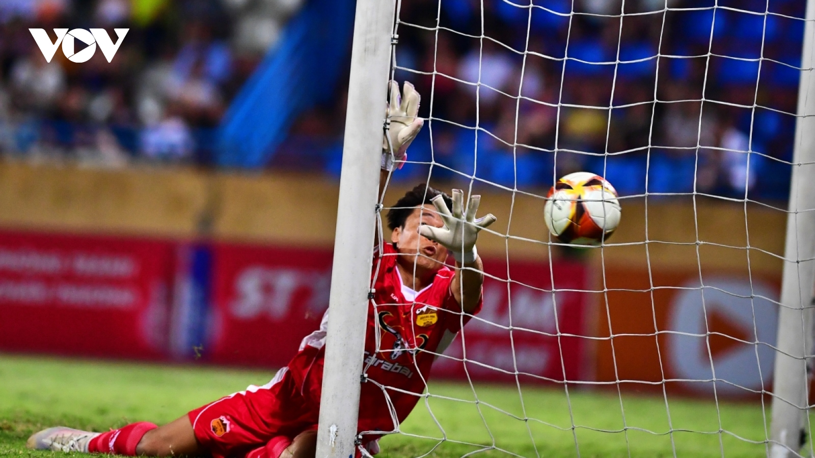 VOV.VN - Bùi Tiến Dũng đã đổ người hết cỡ, nhưng không thể đẩy được cú đánh đầu hiểm hóc của Văn Quyết ở trận đấu Hà Nội FC thắng 2-0 HAGL tại vòng 19 V-League 2023/2024.