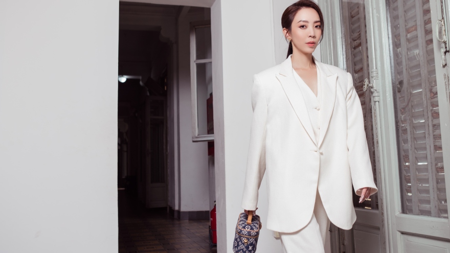 VOV.VN - Diện những trang phục công sở với các tông màu đen - đỏ - cam, Thu Trang gây ấn tượng cùng vẻ ngoài xinh đẹp, mặn mà nhưng cũng vô cùng sang chảnh.