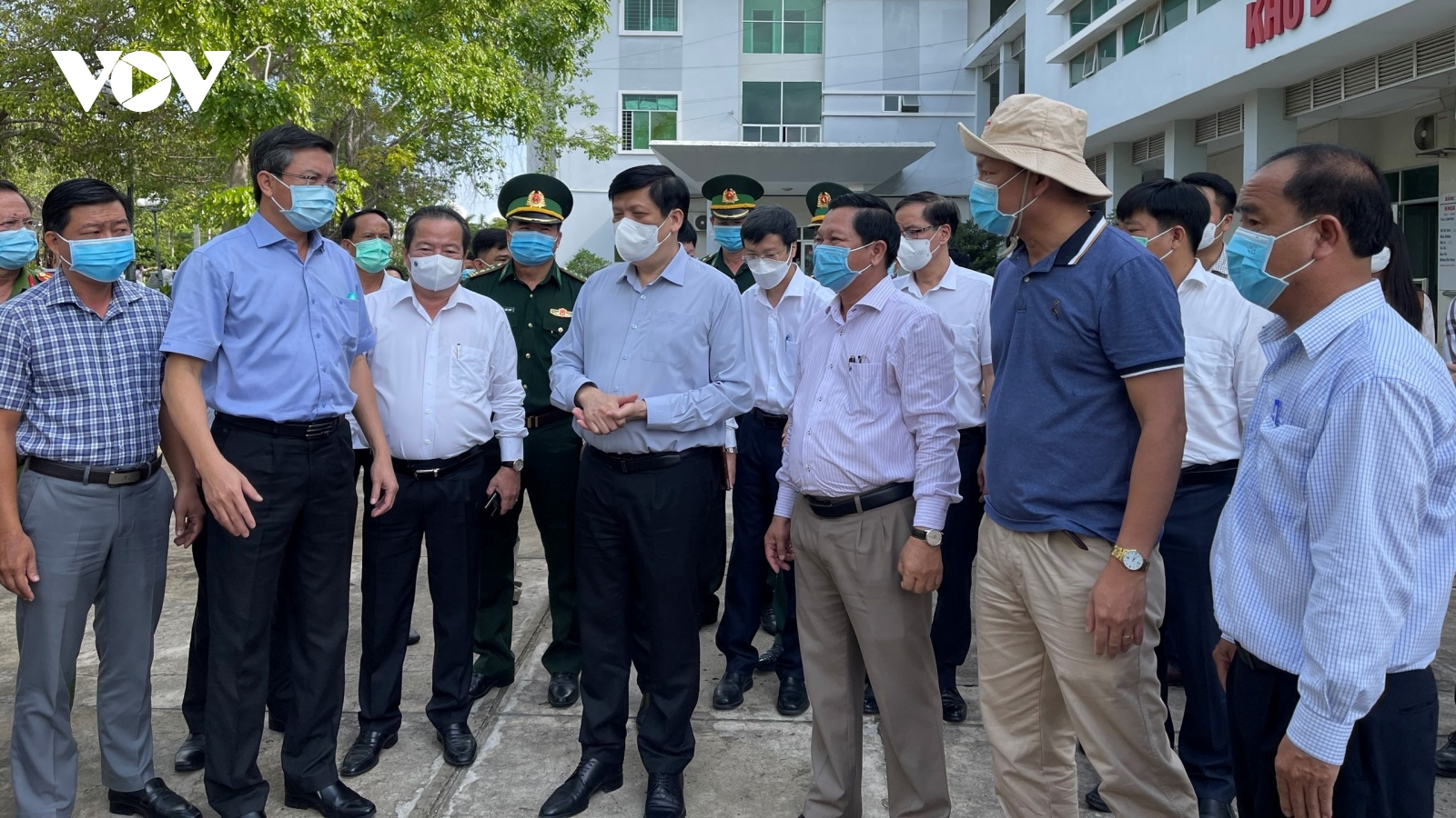 VOV.VN - Sáng 18/4, đoàn công tác Bộ Y tế do GS-TS Nguyễn Thanh Long, Bộ trưởng Bộ Y tế đến kiểm tra công tác phòng chống dịch Covid-19 tại thành phố Hà Tiên, tiếp giáp Campuchia