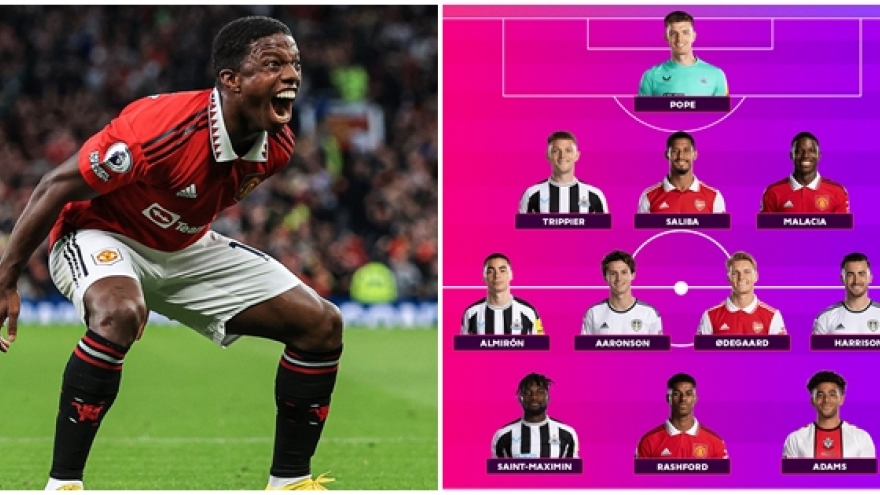 VOV.VN - Đội hình tiêu biểu vòng 3 Ngoại hạng Anh quy tụ 4 cầu thủ Newcastle, 2 cầu thủ MU, 2 cầu thủ Leeds, 2 cầu thủ Arsenal và 1 cầu thủ Southampton.
