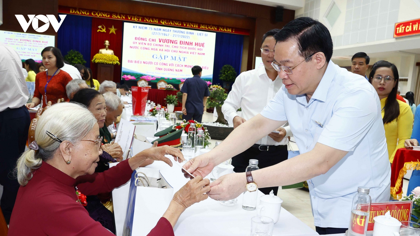 VOV.VN - Nhân kỷ niệm 75 năm ngày Thương binh - Liệt sỹ, chiều nay (27/7), tỉnh Quảng Nam tổ chức cuộc Gặp mặt Đại biểu người có công cách mạng tiêu biểu. Chủ tịch Quốc hội Vương Đình Huệ đã tham dự cuộc gặp mặt này.