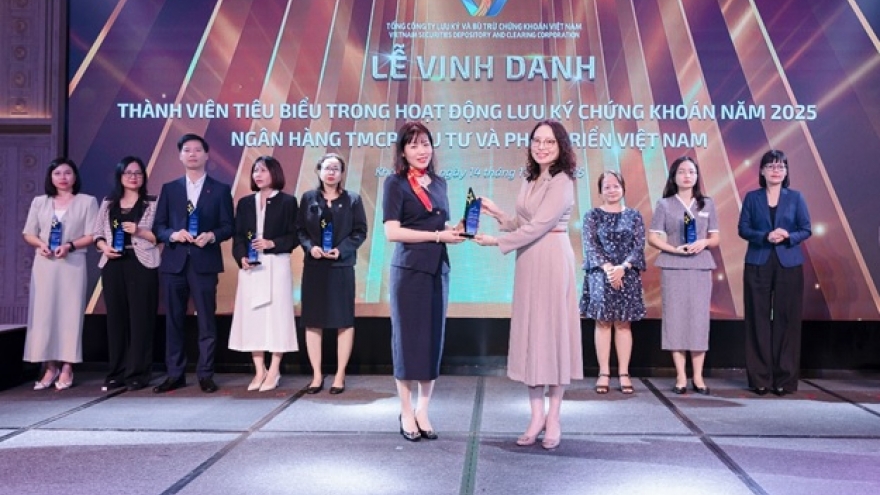 VOV.VN - Với những tích cực trong lĩnh vực Ngân hàng Lưu ký và Ngân hàng Thanh toán thị trường chứng khoán Việt Nam, Ngân hàng TMCP Đầu tư và Phát triển Việt Nam (BIDV) được vinh danh “Top 10 thành viên tiêu biểu trong hoạt động lưu ký chứng khoán” và “Ngân hàng thanh toán tiền giao dịch chứng khoán cơ sở” năm 2025.