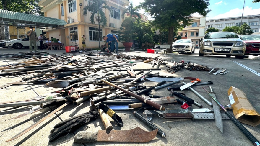 VOV.VN - Hôm nay (11/8), Công an thành phố Dĩ An, tỉnh Bình Dương đã tổ chức tiêu hủy gần 1.000 vũ khí thô sơ, công cụ hỗ trợ được thu giữ trong 6 tháng đầu năm 2023.
