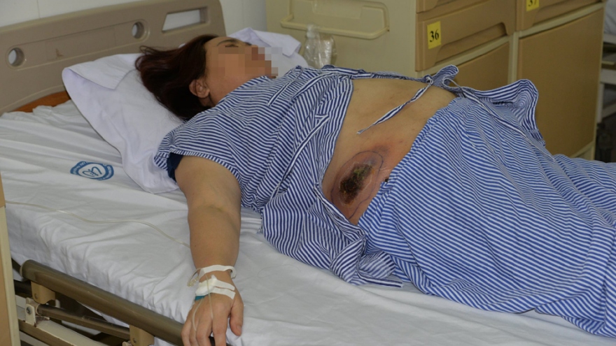VOV.VN - Bệnh nhân Đào Thị Đ, 54 tuổi, ở Gia Lâm (Hà Nội), mắc đái tháo đường 12 năm, nhập viện trong tình trạng loét thành bụng do đắp thuốc lá, nguy cơ nhiễm trùng huyết.