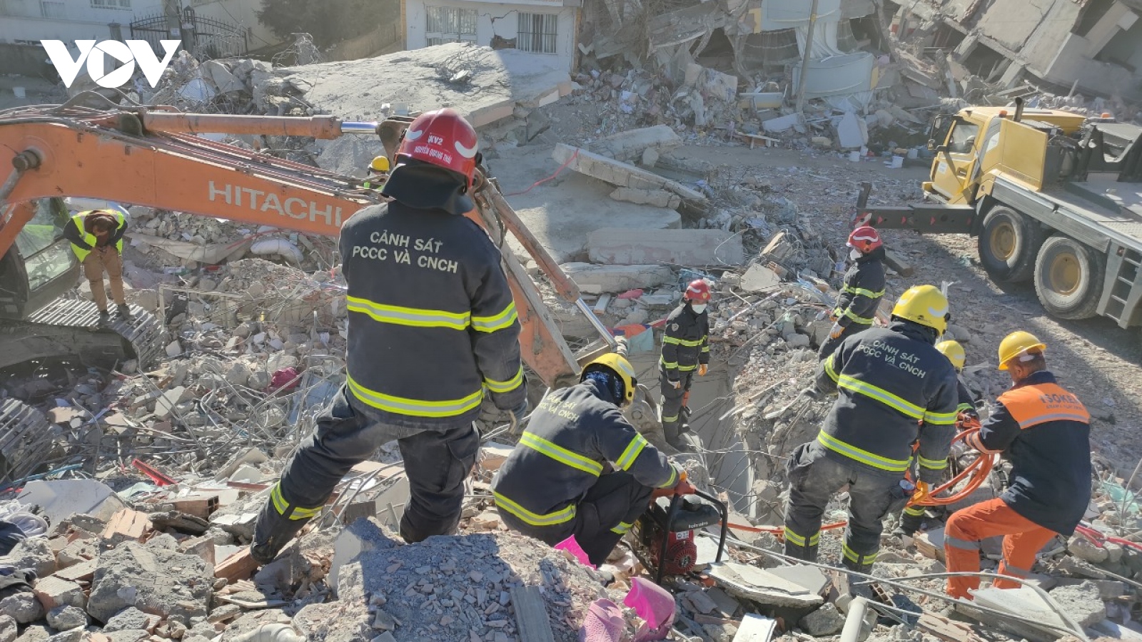 VOV.VN - Sáng nay (17/2), Đoàn cứu hộ cứu nạn của Quân đội nhân dân Việt Nam tiếp tục thực hiện nhiệm vụ dò tìm những người mắc kẹt trong các đống đổ nát tại thành phố Atakya. Đoàn Việt Nam ta cùng với các đoàn quốc tế nỗ lực chạy đua với thời gian.