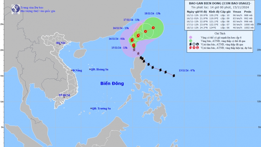VOV.VN - Theo Trung tâm Dự báo Khí tượng Thủy văn Quốc gia, hồi 19h ngày 11/6, vị trí tâm bão số 1 ở vào khoảng 16,7 độ Vĩ Bắc – 111,4 độ Kinh Đông, trên khu vực quần đảo Hoàng Sa. Sức gió mạnh nhất vùng gần tâm bão mạnh cấp 8 (62–74 km/h), giật cấp 10, di chuyển theo hướng Tây Tây Bắc với tốc độ khoảng 15 km/h.