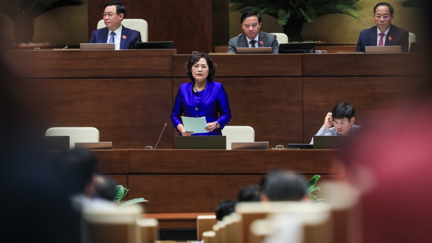VOV.VN - Chiều 8/6, Chủ tịch Quốc hội Vương Đình Huệ tiếp tục điều hành chất vấn nhóm vấn đề thứ 3 thuộc lĩnh vực ngân hàng, với phần trả lời của Thống đốc Ngân hàng Nhà nước Nguyễn Thị Hồng.