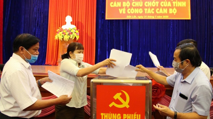 Đăk Lăk tổ chức các hội nghị xem xét cán bộ tái cử nhiệm kỳ mớiVOV.VN - Theo Ban Tổ chức Tỉnh uỷ Đắk Lắk, hiện nay Ban chấp hành Đảng bộ tỉnh có 55 uỷ viên, trong đó có 14 người không đủ điều kiện tái cử.