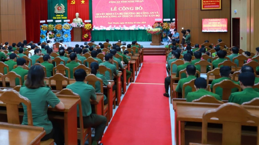 VOV.VN - Công an tỉnh Ninh Thuận vừa công bố quyết định giải thể công an 7 huyện, thành phố, đồng thời thăng cấp bậc hàm Đại tá cho Phó Giám đốc Công an tỉnh. Đây là bước kiện toàn tổ chức bộ máy quan trọng của lực lượng công an tỉnh.
