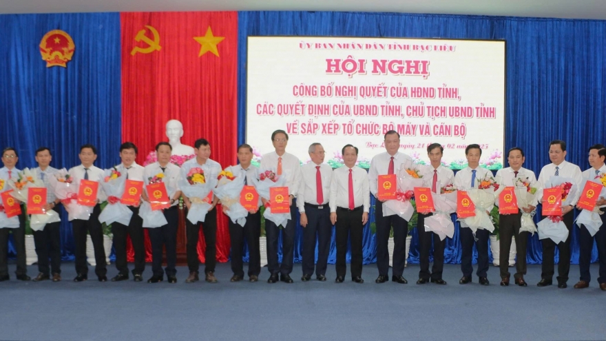 VOV.VN - Tại hội nghị, đại diện lãnh đạo Sở Nội vụ cũng công bố các quyết định của Chủ tịch UBND tỉnh Bạc Liêu về việc bổ nhiệm giám đốc, các phó giám đốc các cơ quan chuyên môn thuộc UBND tỉnh sau hợp nhất.