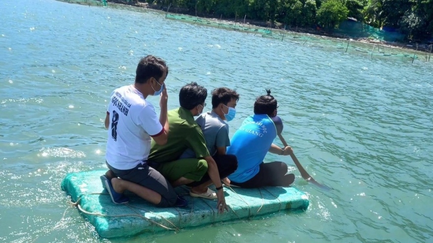 VOV.VN - Tham gia tình nguyện lấy mẫu xét nghiệm cho bà con nhân dân trên các đảo thuộc xã Tiên Hải, TP. Hà Tiên, Kiên Giang, Thanh Nhựt và các cán bộ phải di chuyển bằng ghe, thuyền, bè.