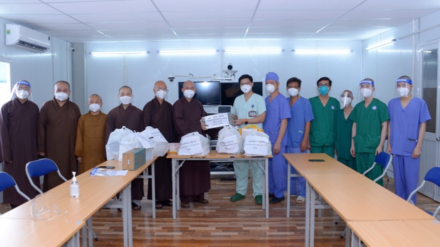 VOV.VN - Sáng 2/9, Thượng tọa Thích Đức Thiện cùng các chư tôn đức GHPGVN đã tới thăm, động viên các y bác sĩ và tình nguyện viên các tôn giáo tại một số bệnh viện dã chiến điều trị COVID-19 tại TP.HCM.