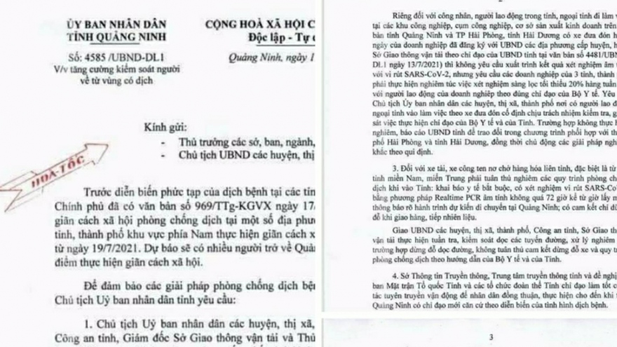 VOV.VN - Cụ thể, từ 0h00 ngày 18/7, tất cả người vào Quảng Ninh cần phải có phiếu xét nghiệm virus SARS –CoV2 bằng phương pháp Realtime PCR có kết quả âm tính tới đủ 72 giờ kể từ khi lấy mẫu.