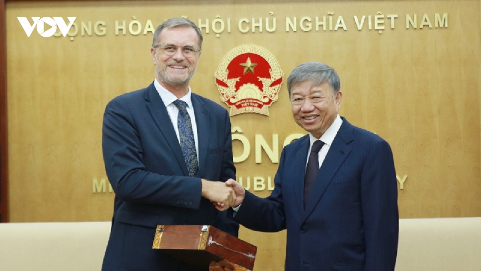 VOV.VN - Nhân dịp Đoàn đại biểu cấp cao Campuchia do Ngài Neth Savoeun, Phó Thủ tướng thứ nhất Vương quốc Campuchia dẫn đầu sang tham dự Lễ kỷ niệm 45 năm ngày Chiến thắng chiến tranh bảo vệ biên giới Tây Nam của Tổ quốc và cùng quân dân Campuchia chiến thắng chế độ diệt chủng (7/1/1979 – 7/1/2024) Đại tướng Tô Lâm, Bộ trưởng Bộ Công an đã tiếp và làm việc với Ngài Neth Savoeun.