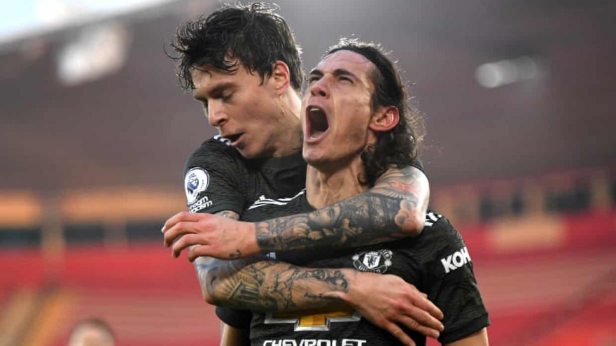 VOV.VN - Edison Cavani thể hiện đẳng cấp với 1 pha kiến tạo và cú đúp đánh đầu thành bàn sau khi vào sân từ ghế dự bị, giúp MU lội ngược dòng thắng Southampton 3-2.