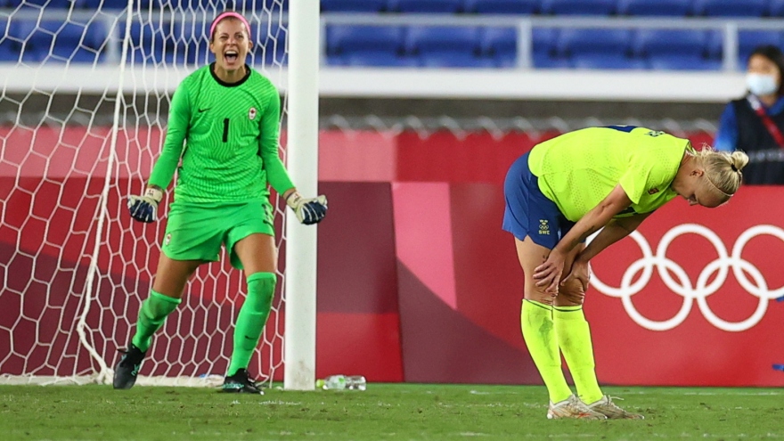 VOV.VN - Sau 120 phút thi đấu với tỷ số hoà 1-1, Canada giành chiến thắng 3-2 trước Thuỵ Điển để trở thành chủ nhân tấm HCV môn bóng đá nữ Olympic Tokyo.