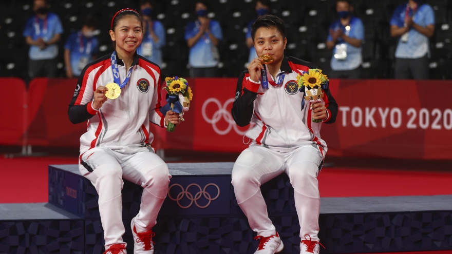 VOV.VN - Đôi VĐV Greysia Polii/Apriyani Rahayu (Indonesia) đã giành HCV đôi nữ môn cầu lông sau khi đánh bại cặp đôi Chen Qing Chen/JIa Yi Fan (Trung Quốc) ở trận chung kết.