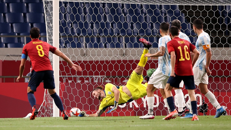 VOV.VN - Bốn bàn thắng của Kubo (27'), Sakai (34'), Myoshi (70') và Maeda (90') giúp Nhật Bản giành thắng lợi 4-0 trước Pháp để tiến vào tứ kết môn bóng đá nam Olympic Tokyo 2020 với tư cách đội dẫn đầu bảng A. Trong khi đó, Pháp đã bị loại ngay từ vòng đấu bảng.