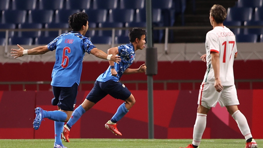 VOV.VN - Ritsu Doan toả sáng rực rỡ với 1 pha ghi bàn, 1 pha kiến tạo và khiến hậu vệ đối phương nhận thẻ đỏ trong chiến thắng 2-1 của Nhật Bản trước Mexico ở bảng A môn bóng đá nam Olympic Tokyo.