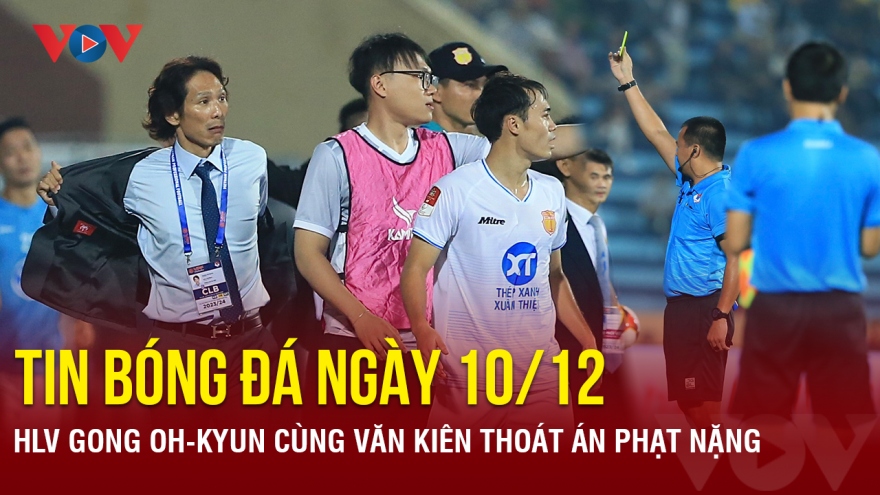 VOV.VN -Tin bóng đá 10/12, HLV Gong Oh-kyun cùng Văn Kiên thoát án phạt nặng, sau khi HLV của CLB CAHN nổi nóng với Văn Kiên trong trận đấu giữa CLB CAHN và CLB Nam Định thuộc vòng 5 V-League 2023/2024.