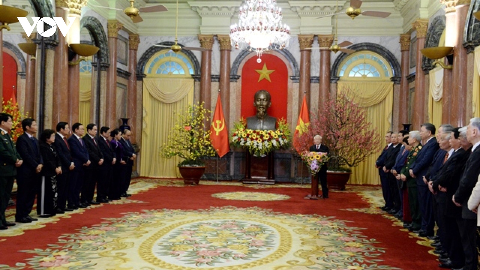 VOV.VN - "Vào thời khắc giao thừa thiêng liêng và đầy cảm xúc này, tôi xin được thay mặt lãnh đạo Đảng và Nhà nước thân ái gửi tới toàn thể đồng bào, đồng chí và chiến sĩ cả nước, cộng đồng người Việt Nam ta ở nước ngoài những tình cảm thân thiết, lời thăm hỏi chân tình và lời chúc mừng năm mới tốt đẹp nhất"