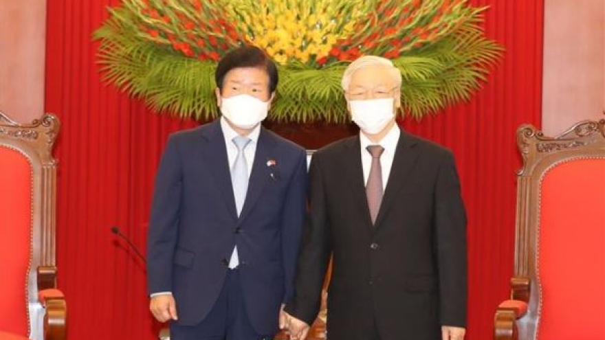 VOV.VN - Chiều tối nay (2/11), tại Trụ sở Trung ương Đảng, Tổng Bí thư, Chủ tịch nước Nguyễn Phú Trọng đã tiếp Chủ tịch Quốc hội Hàn Quốc Park Byeong Seug đang có chuyến thăm chính thức Việt Nam.