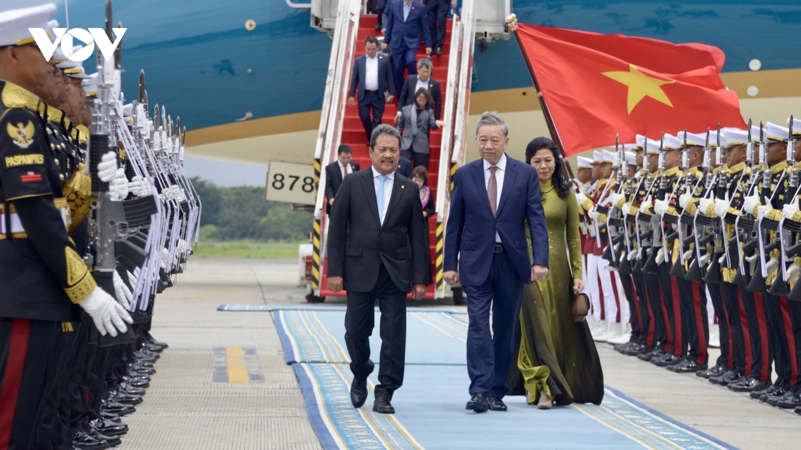 VOV.VN - Trong khuôn khổ chuyến thăm cấp Nhà nước Cộng hòa Indonesia, thăm chính thức Ban Thư ký ASEAN, sáng 10/3, tại Trụ sở Ban Thư ký ASEAN, thủ đô Jakarta, Tổng Bí thư Tô Lâm và Phu nhân cùng Đoàn đại biểu cấp cao Việt Nam đã dự Lễ kỷ niệm 30 năm Việt Nam gia nhập ASEAN và có bài phát biểu chính sách quan trọng.