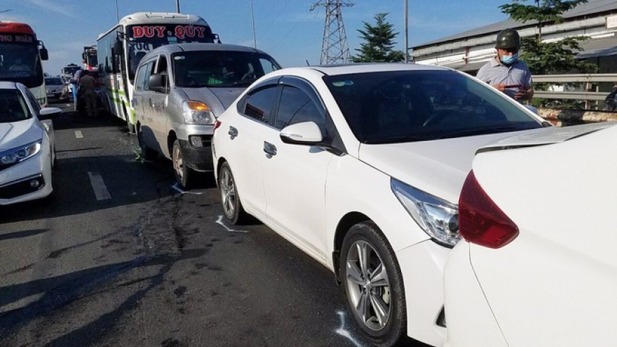 VOV.VN - Tối 15/5, một vụ tai nạn giao thông xảy ra giữa 5 xe ô tô trên đường Vành đai 3 trên cao theo hướng Mai Dịch đi Linh Đàm khiến giao thông ùn tắc kéo dài.