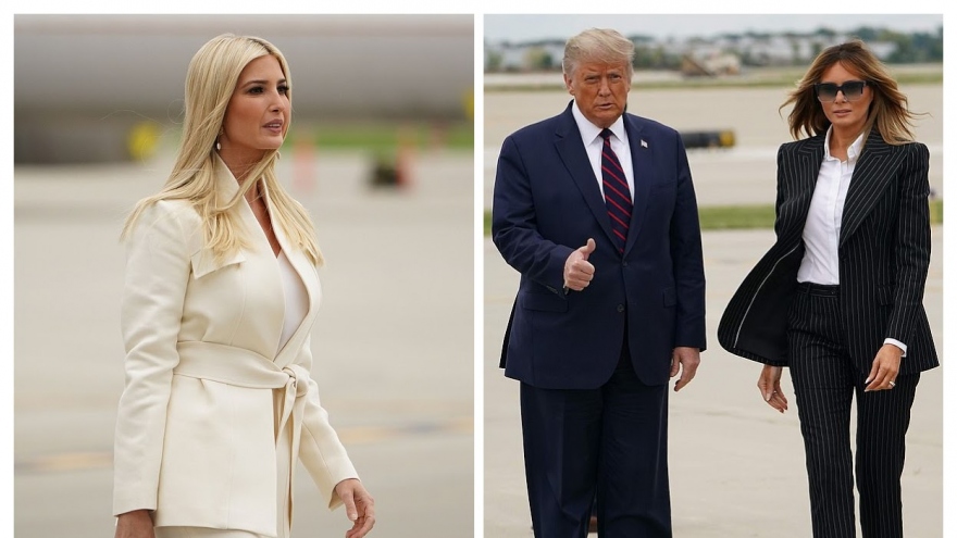 VOV.VN - Ivanka Trump cùng Đệ nhất phu nhân Melania đã chọn trang phục vest đắt tiền để tới Cleveland ủng hộ ông Trump trong cuộc tranh luận tổng thống đầu tiên với đối thủ Joe Biden.