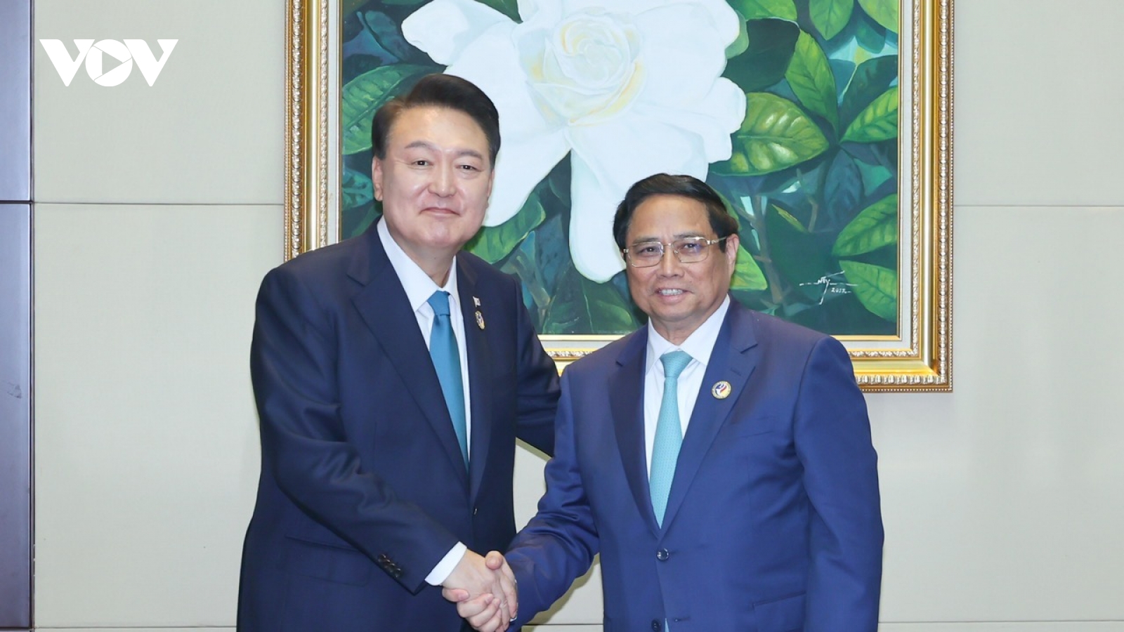 VOV.VN - Sáng 10/10, nhân dịp dự Hội nghị cấp cao ASEAN 44, 45 và các Hội nghị cấp cao liên quan tại Vientiane, Lào, Thủ tướng Chính phủ Phạm Minh Chính đã hội kiến Tổng thống Hàn Quốc Yoon Suk-yeol.