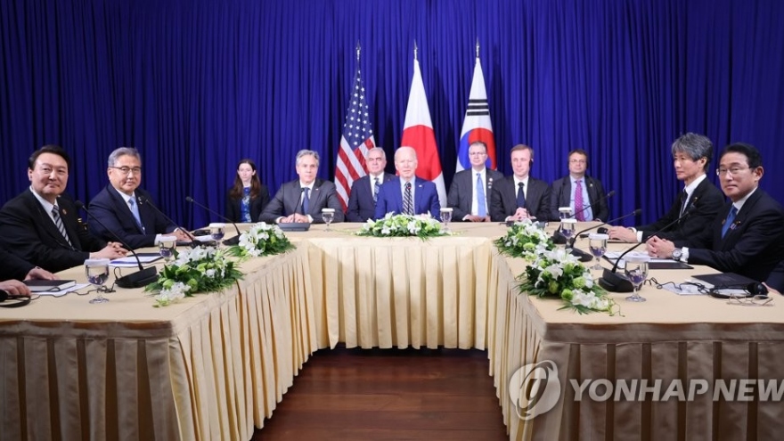 VOV.VN - Tổng thống Mỹ Joe Biden ngày 13/11 đã gặp Thủ tướng Nhật Bản và Hàn Quốc tại Thượng đỉnh Đông Á ở Campuchia. Các bên đã ra tuyên bố chung về đối tác ba bên vì một Ấn Độ Dương-Thái Bình Dương tự do và rộng mở.