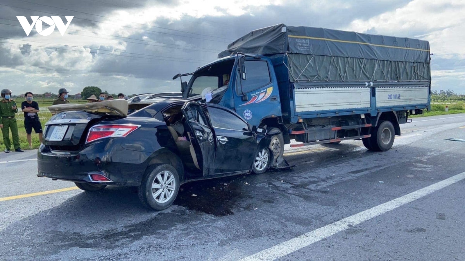 VOV.VN - Tin từ Công an huyện Lắk, tỉnh Đắk Lắk chiều (23/4), các đơn vị nghiệp vụ công an huyện đang phối hợp với cơ quan chức năng tổ chức điều tra, làm rõ vụ xe ô tô con tông xe máy khiến 2 nam thanh niên thương vong.