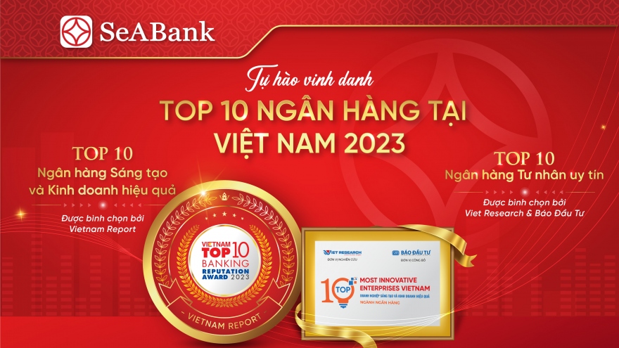 VOV.VN - Ngân hàng TMCP Đông Nam Á (SeABank, mã chứng khoán SSB) vừa vinh dự được Viet Research cùng Báo Đầu tư vinh danh ở hạng mục “Top 10 Ngân hàng sáng tạo và kinh doanh hiệu quả” (Top 10 Most Innovative Banks Vietnam – VIE10). Bên cạnh đó, SeABank cũng được trao tặng danh hiệu “Top 10 Ngân hàng tư nhân uy tín 2023” bởi Vietnam Report.