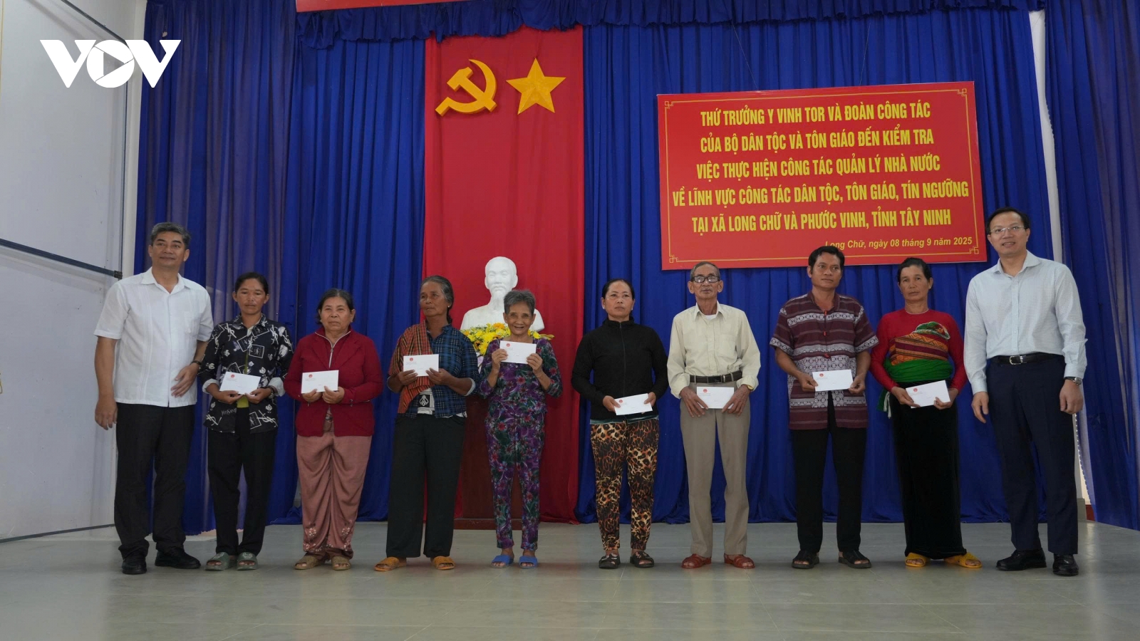 VOV.VN - Ngày 8/9, Đoàn công tác của Bộ Dân tộc và Tôn giáo do Thứ trưởng Y Vinh Tơr, Ủy viên dự khuyết Trung ương Đảng làm trưởng đoàn đã có chuyến kiểm tra công tác dân tộc, tín ngưỡng, tôn giáo tại hai xã biên giới Long Chữ và Phước Vinh, tỉnh Tây Ninh.