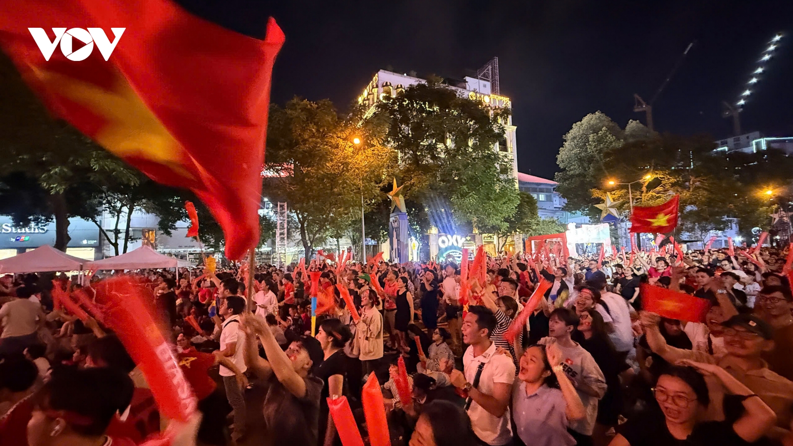 VOV.VN - Sau 120 phút nghẹt thở, U22 Việt Nam đã giành được tấm HCV quý giá của SEA Games 33. Cùng với người hâm mộ cả nước, hàng vạn người dân TP.HCM đã đổ ra đường ăn mừng. Từ khắp các phường, xã, dòng người như thác đổ về trung tâm thành phố, trên tay họ là cờ Tổ quốc và những tiếng hô vang "Việt Nam vô địch".