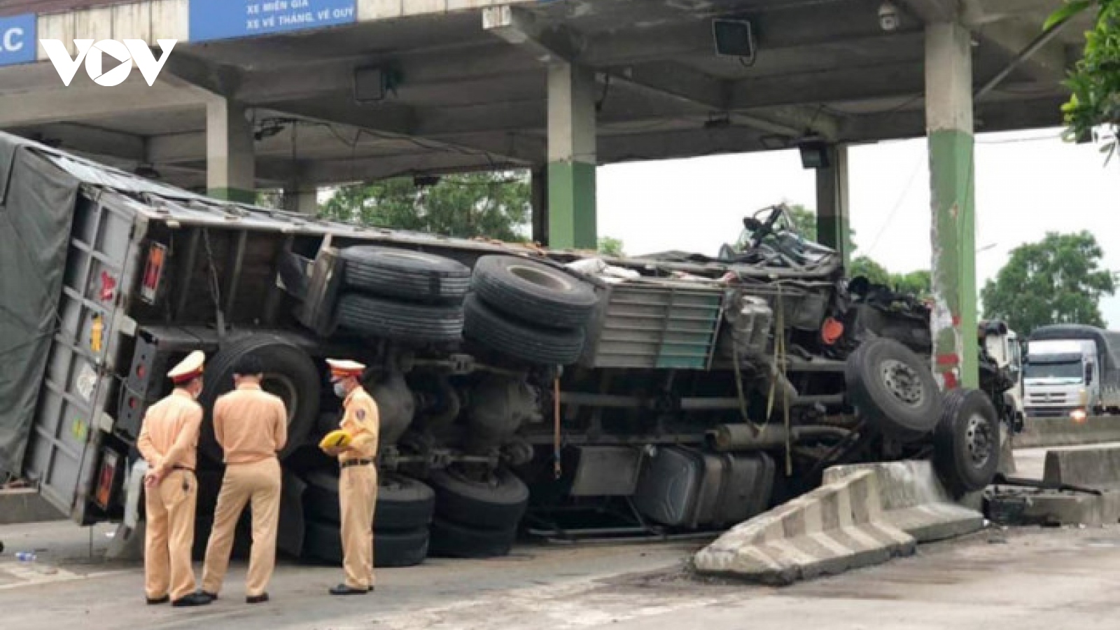 VOV.VN - Khi chiếc xe tải chở dưa hấu đang lưu thông trên đường thì mất lái đâm vào trạm thu phí Cầu Rác (Hà Tĩnh) đang bỏ không. Vụ tai nạn khiến phần đầu xe biến dạng, rất may tài xế chỉ bị thương nhẹ.