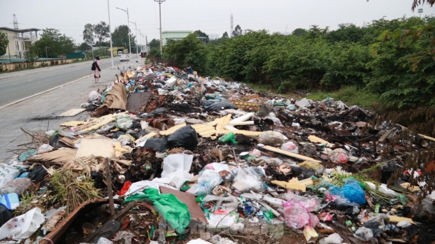 VOV.VN - Theo người dân sống ở khu vực lân cận, từ cuối năm ngoái, trên đường Đồng Bông 1, thuộc phường Phú Đô, quận Nam Từ Liêm, Hà Nội đã xuất hiện một bãi rác tự phát “khổng lồ”.