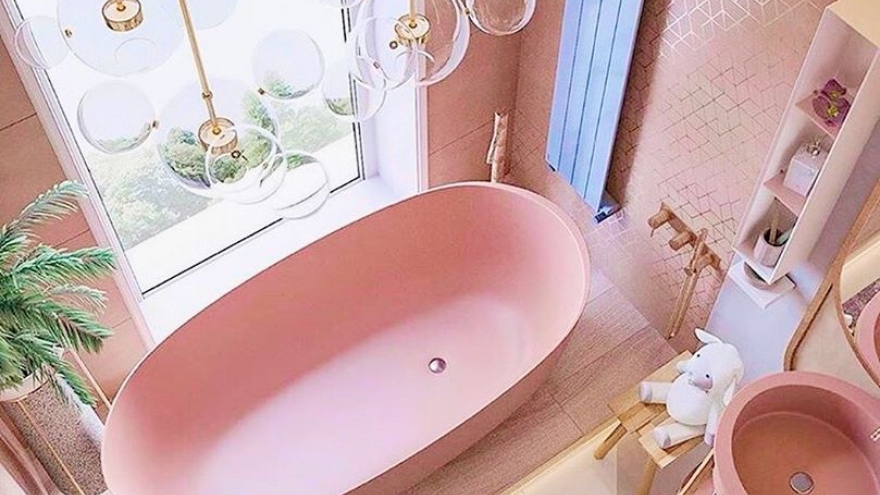 VOV.VN - Màu hồng được xem là màu sắc gắn liền với nét đẹp dịu nhẹ, lãng mạn và ngọt ngào và không thể phủ nhận rằng màu hồng cũng là một lựa chọn hoàn toàn phù hợp cho những phòng tắm, nhà tắm hay nhà vệ sinh.