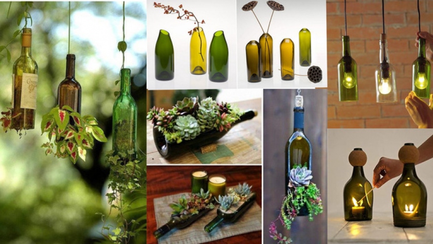 VOV.VN - Vỏ chai rượu thủy tinh thường bị bỏ đi hoặc để dồn trong kho đồ cũ không dùng đến. Dưới đây là những gợi ý nho nhỏ để bạn có thể tận dụng chai cũ tạo đồ trang trí độc đáo, hữu ích cho không gian nội thất cũng như ngoại thất.