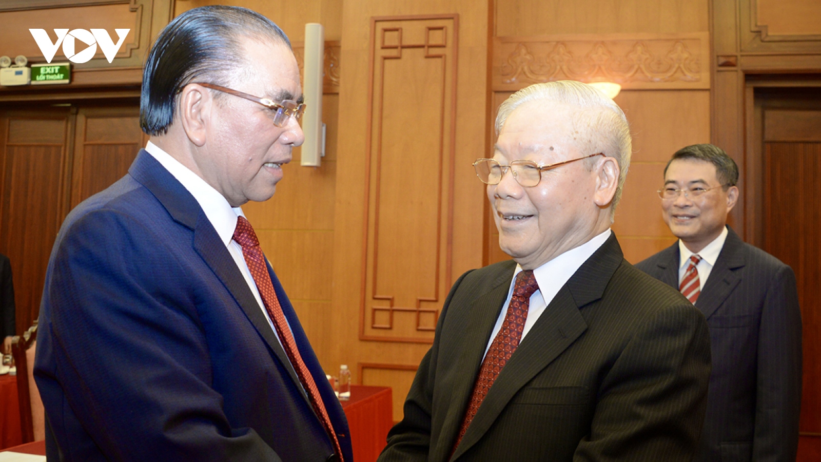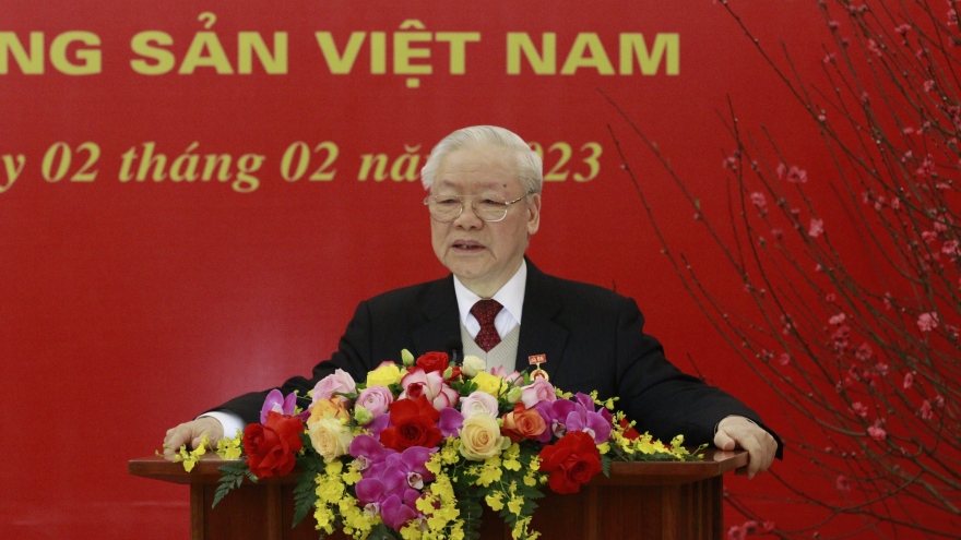 VOV.VN - Phát biểu tại Lễ trao Huy hiệu 55 năm tuổi Đảng tặng Tổng Bí thư Nguyễn Phú Trọng, Thường trực Ban Bí thư Võ Văn Thưởng nhấn mạnh: 55 năm đứng trong hàng ngũ của Đảng, đồng chí Nguyễn Phú Trọng luôn tuyệt đối trung thành với Đảng, với Tổ quốc và Nhân dân; trong mọi hoàn cảnh luôn tỏ rõ bản lĩnh, trí tuệ của người cộng sản kiên cường.