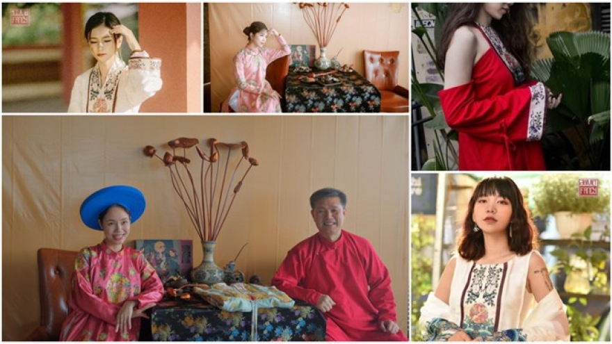 VOV.VN - Không ít bạn trẻ thích áo dài, áo viên lĩnh, giao lĩnh, nhật bình với nhiều màu sắc, họa tiết, hoa văn cực kì bắt mắt. Có thể thấy, những bộ cổ phục đang được hồi sinh trong xã hội đương đại.
