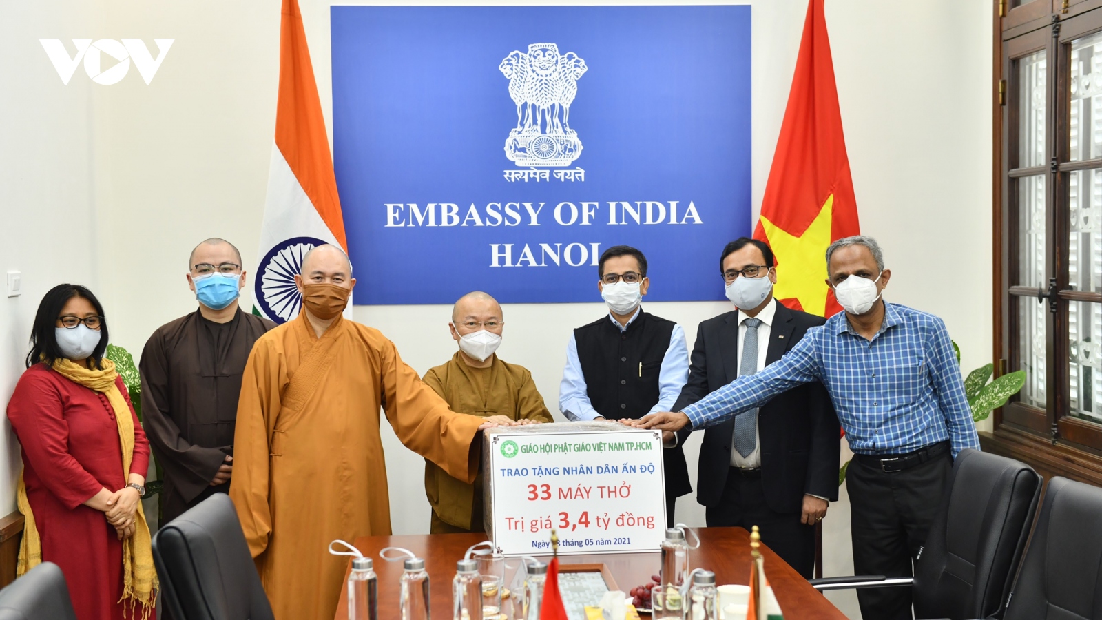 VOV.VN - Sáng nay (23/7), tại chùa Minh Đạo - TP.HCM, Hòa thượng Thích Thiện Nhơn – Chủ tịch Hội đồng Trị sự Giáo hội Phật giáo Việt Nam đã thay mặt Trung ương Giáo hội Phật giáo Việt Nam trao tặng 6 máy thở đa năng, tổng trị giá hơn 4 tỷ đồng đồng cho TP.HCM.