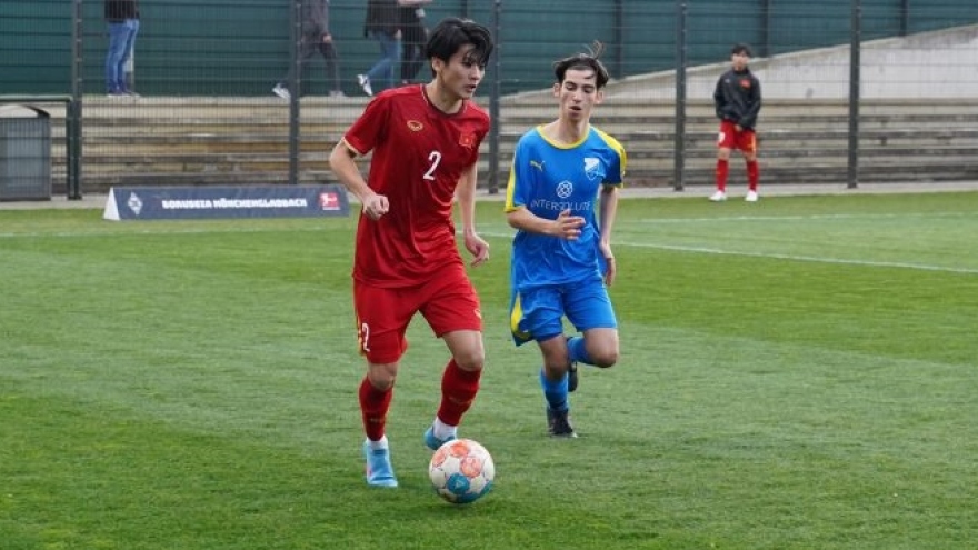 VOV.VN - U17 Việt Nam giành chiến thắng 6-0 trong trận giao hữu với U17 Monchengladbach nhờ các pha làm bàn của Bá Đạt, Long Vũ, Minh Tiến, Bảo Long, Huỳnh Triệu và Minh Thuận.