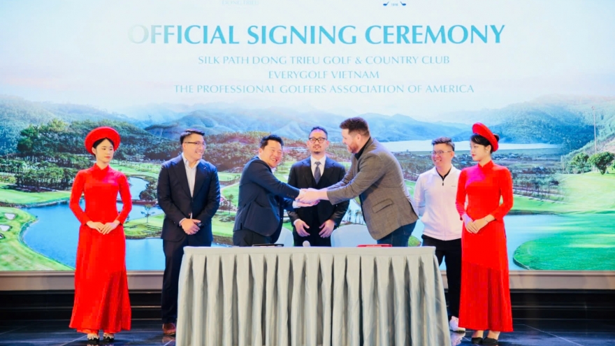 VOV.VN - Ngày 8/3, Lễ ký kết hợp tác giữa Trung tâm đào tạo golf Việt Nam (Every Golf Việt Nam), Silk Path Dong Trieu và Hiệp hội golf chuyên nghiệp của Mỹ (PGA of America) đã diễn ra tại tỉnh Quảng Ninh.