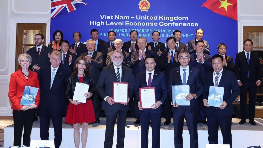 VOV.VN - Trong khuôn khổ chuyến thăm chính thức Liên hiệp Vương quốc Anh và Bắc Ireland, sáng 30/10 (giờ địa phương), tại thủ đô London, Tổng Bí thư Tô Lâm và Đoàn đại biểu cấp cao Việt Nam đã chứng kiến Lễ trao thỏa thuận hợp tác của các bộ, ngành, cơ quan Chính phủ, địa phương và tập đoàn, doanh nghiệp.