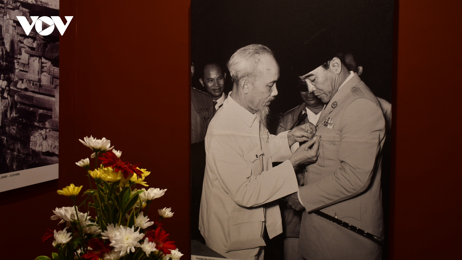 VOV.VN - Triển lãm trưng bày 50 bức ảnh về chuyến thăm của Chủ tịch Hồ Chí Minh đến Indonesia và chuyến thăm của Tổng thống Soekarno đến Việt Nam, cùng với 180 ảnh phản ánh sự phát triển của quan hệ Việt Nam và Indonesia trong hơn 65 năm qua